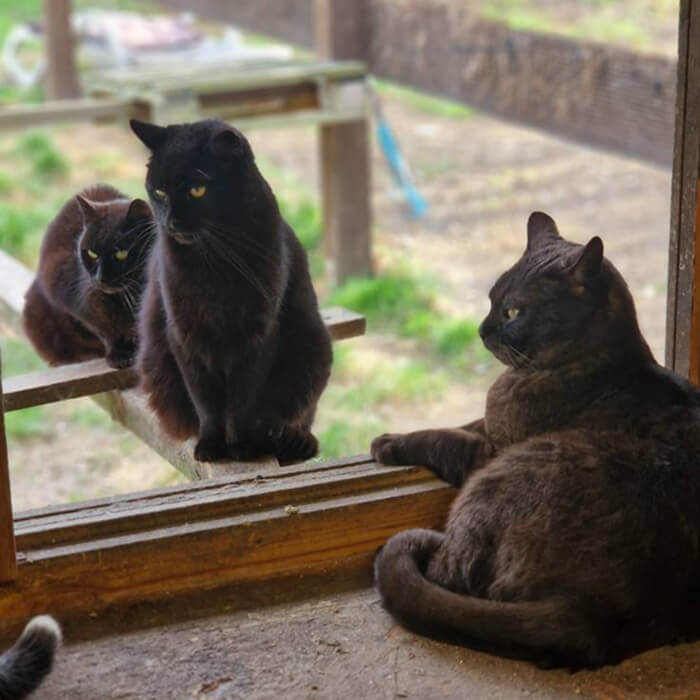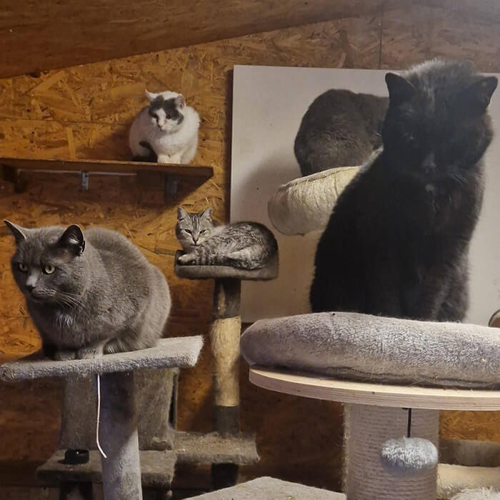 Nejstarším kočičím obyvatelem je náš kocourek Jinks, který letos oslaví devatenácté narozeniny a staráme se o něj od koťátka. Naše kočičáky je možné podpořit formou nákupu krmiva a nebo příspěvku na veterinu. Rádi poradíme s odchytem, kastracemi a následnou péčí, rádi půjčíme sklopec nebo pomůžeme s odchytem a těm, kdo krmí „toulavky“ jsme schopni pomoci s krmivem.